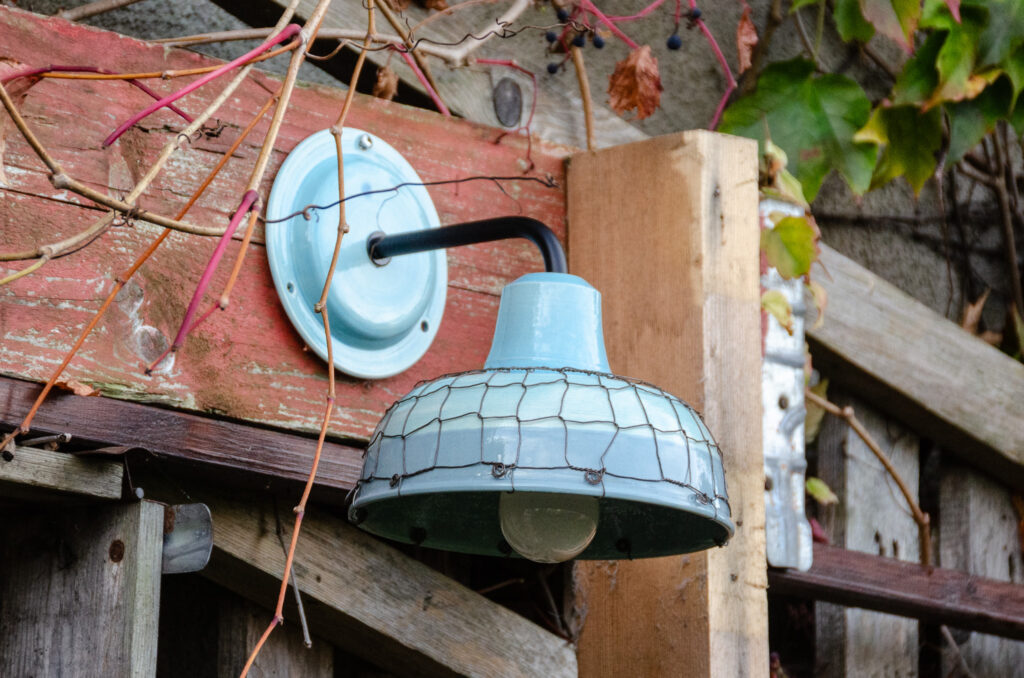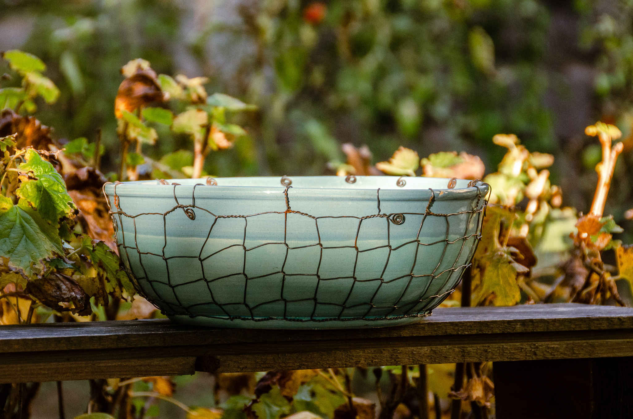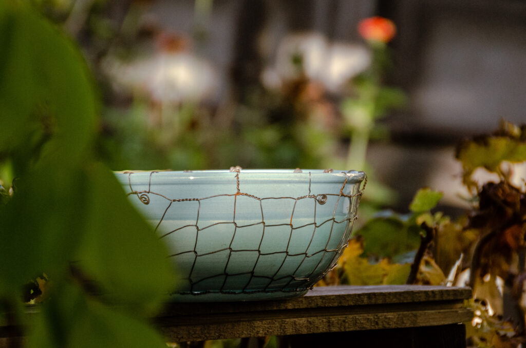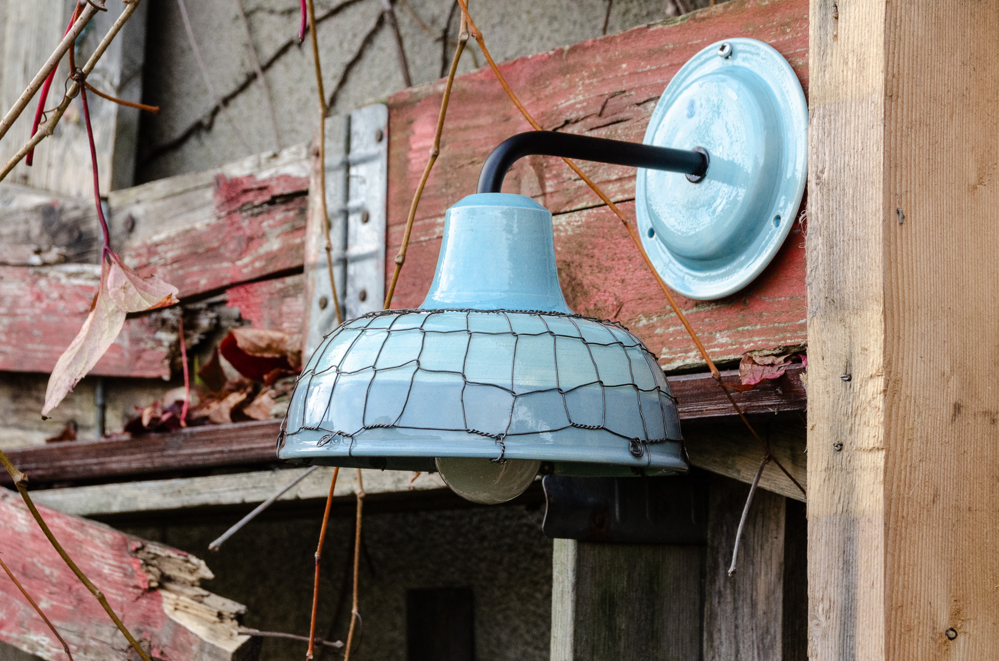Keramika točená na kruhu a následně drátovaná. Glazovaná z vnější i vnitřní strany, drátovaná hutním, taženým drátem (není nerezový). Nástěnná lampa má přívod elektřiny řešený ze zdi. Patice na žárovku E27 (běžná velikost žárovky).